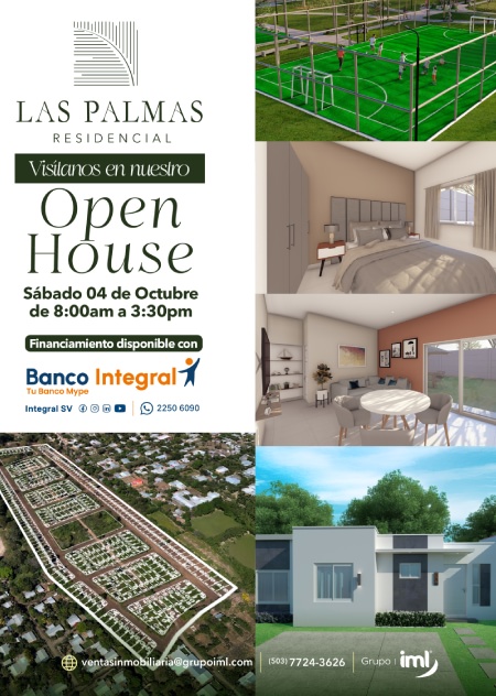 Open House Residencial Las Palmas, Santa Ana Banco Integral te invita al Open House Residencial Las Palmas,Santa Ana, Sábado 4 de octubre.Financiamiento disponible, más información al 2250-6090