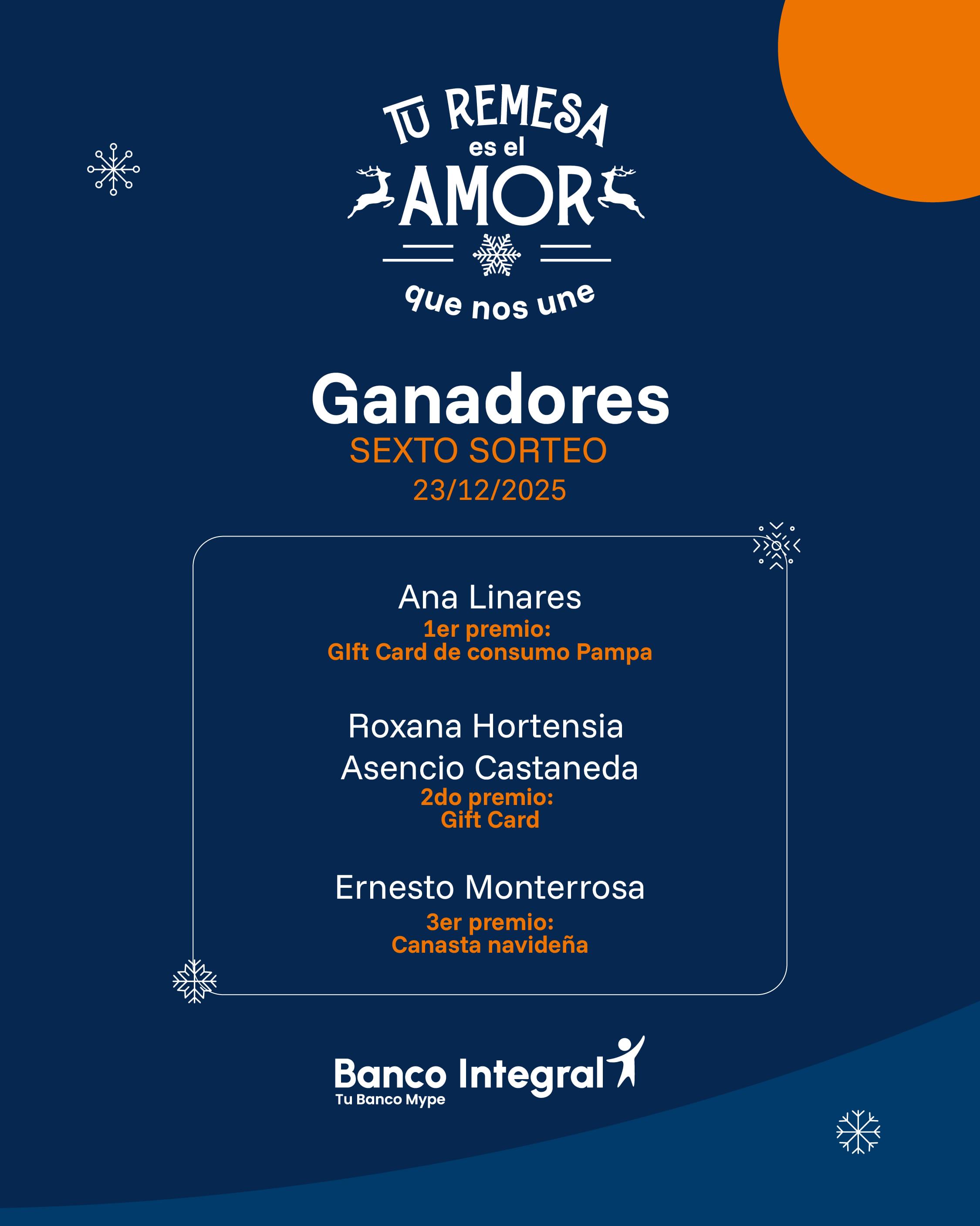 Ganadores de sorteos de nuestra campaña: Tu remesa es el amor que nos une.